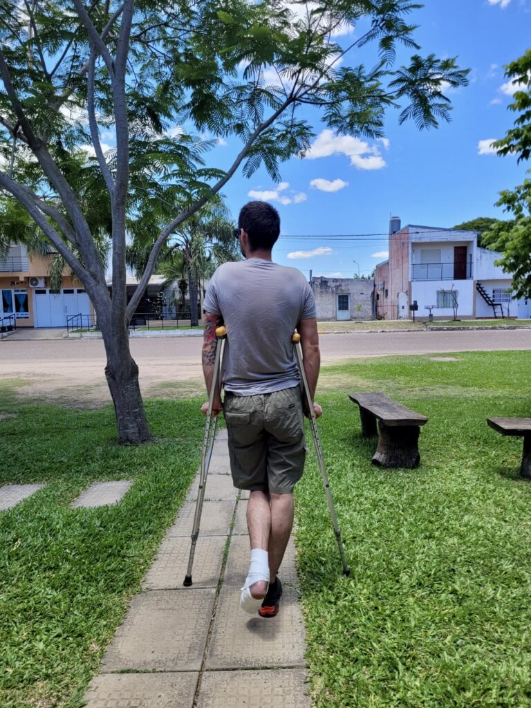Même si la radio ne révélait aucune fracture, nous voulions nous assurer que les ligaments n’étaient pas touchés. Suite à un quiproquo, nous avons loupé le rendez-vous à l’hôpital et n’étions pas sûrs d’en avoir un autre rapidement. Nous avons donc décidé d’aller à la clinique mais il n’y avait aucun traumatologue de disponible ce jour-là. Encore sous le choc de l’accident, et très stressés, nous avons pu compter sur l’aide de Viviana, la propriétaire de l’hôtel et sa collègue se sont démenées pour nous trouver un rendez- vous auprès d’un spécialiste.