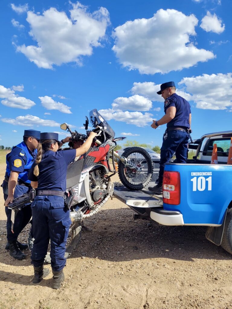 Pendant que Thomas est pris en charge, Adeline reste avec la police pour remplir quelques papiers. On lui explique que selon la gravité de l’accident, et sur décision du procureur, la moto pourrait être réquisitionnée pour une expertise complémentaire. Après quelques minutes d’attente, c’est la décision qui sera prise. Après avoir déchargé toute la bagagerie, la moto est donc chargée à l’arrière du pick-up de la police avec une facilité impressionnante. On sent qu’ici ils ont l’habitude! La police propose ensuite de charger toute la bagagerie de Thomas à l’arrière du deuxième pick-up conduit par les agents de la circulation et d’accompagner Adeline à l’hôpital.